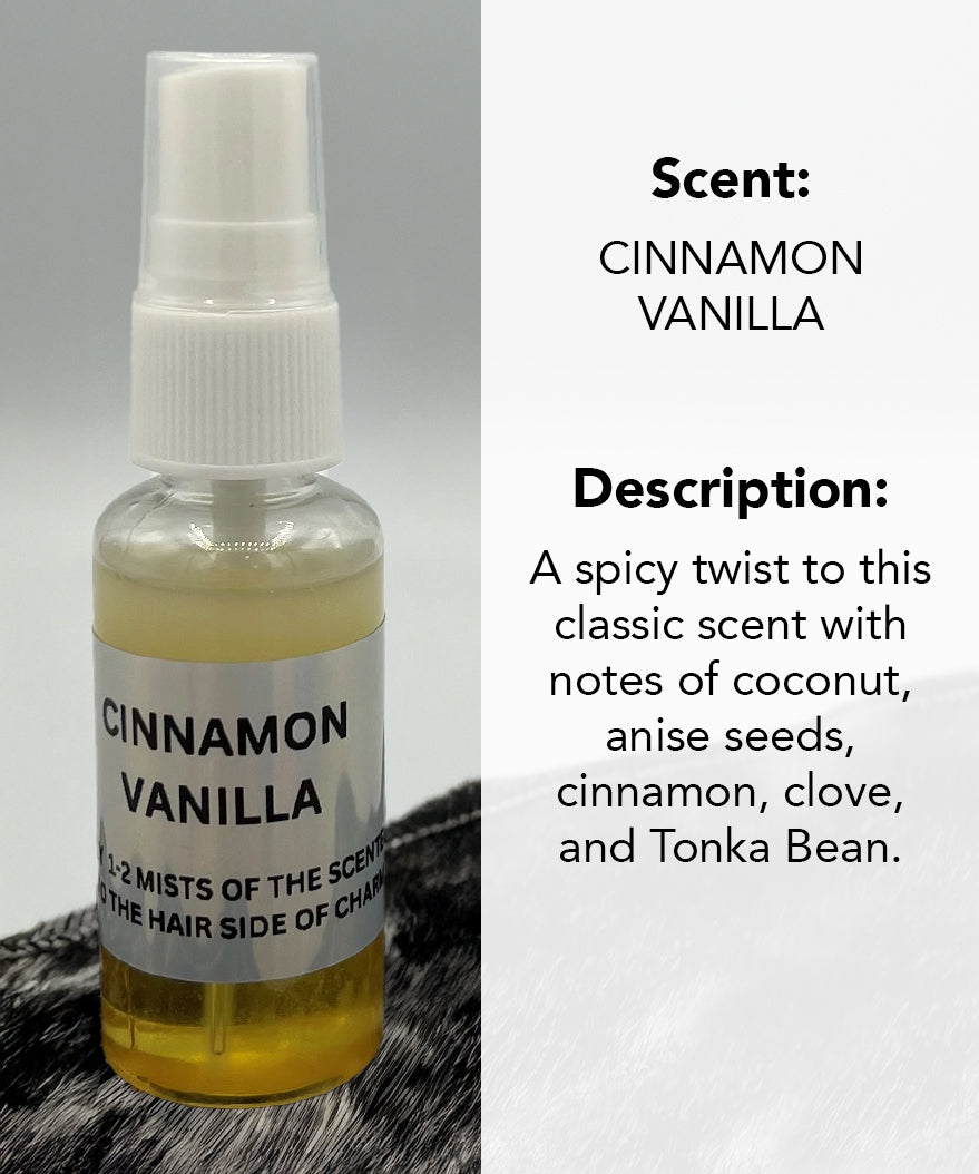 **THE COWHIDE PIECE THAT ATTACHED TO THIS PACKAGE IS PRE-SCENTED IN THE CINNAMON VANILLA SCENT. IT IS NOT A CHARM!