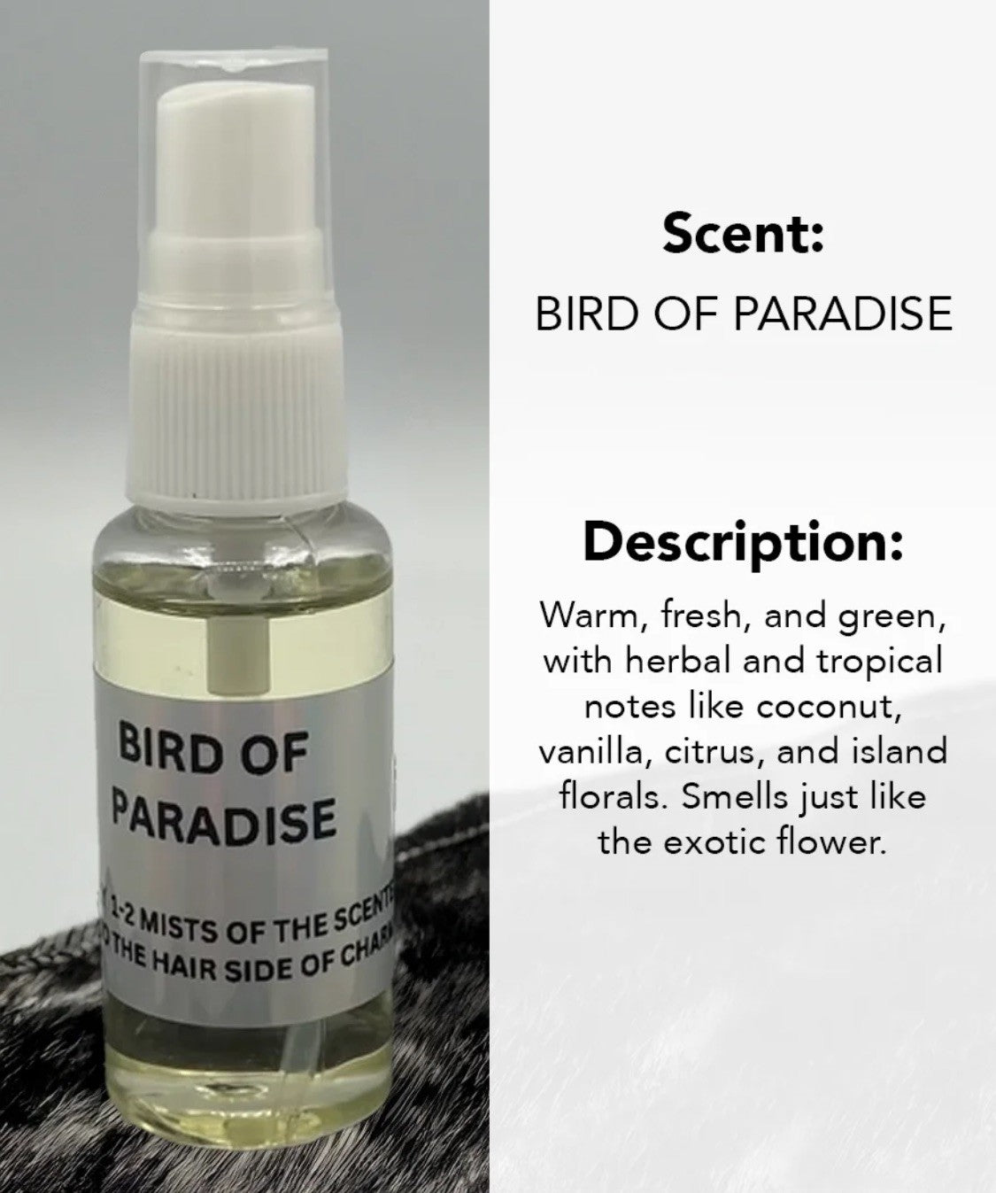 **THE COWHIDE PIECE THAT ATTACHED TO THIS PACKAGE IS PRE-SCENTED IN THE BIRD OF PARADISE SCENT. IT IS NOT A CHARM!